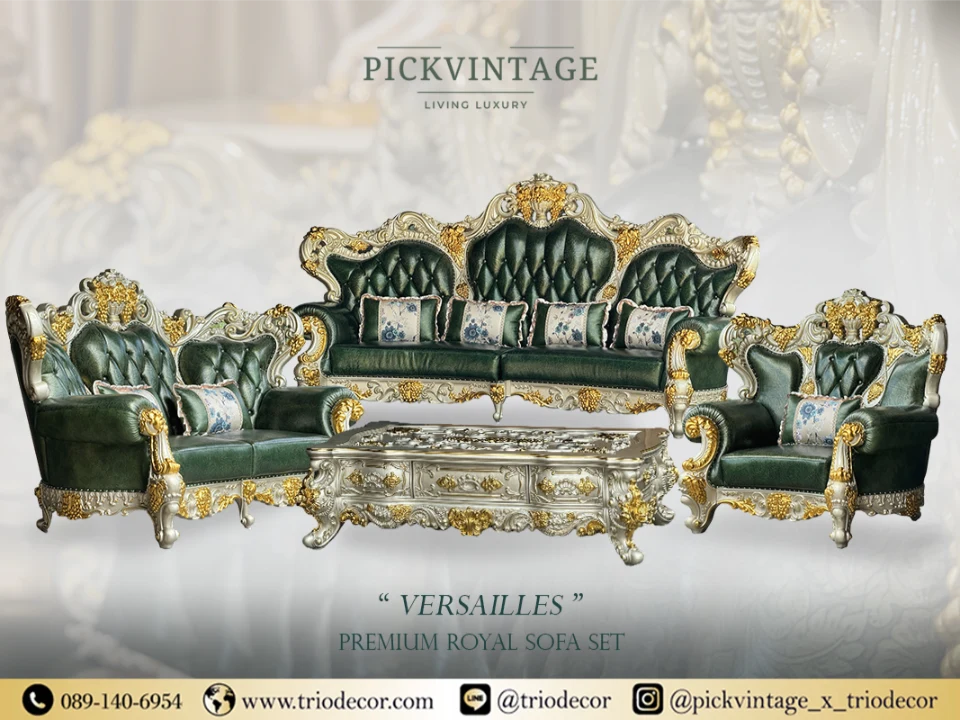 : ชุดโซฟาหลุยส์ 𝟺ชิ้น (𝟺+𝟸+𝟷 ที่นั่ง) พร้อมโต๊ะกลางสุดหรู รุ่น “เวอร์ไซยส์”